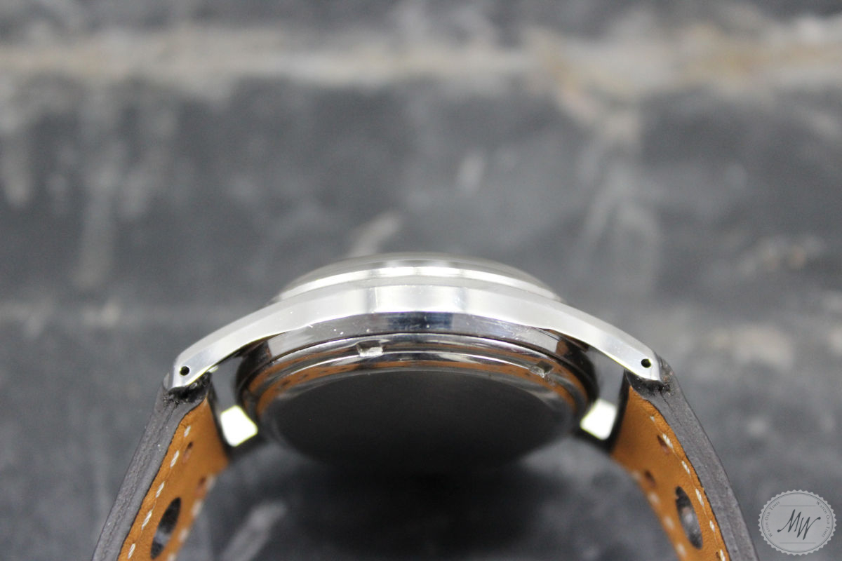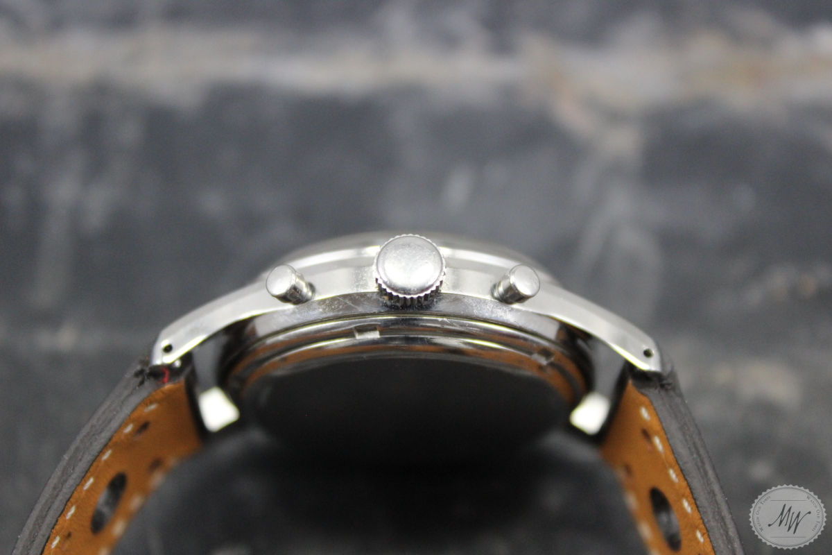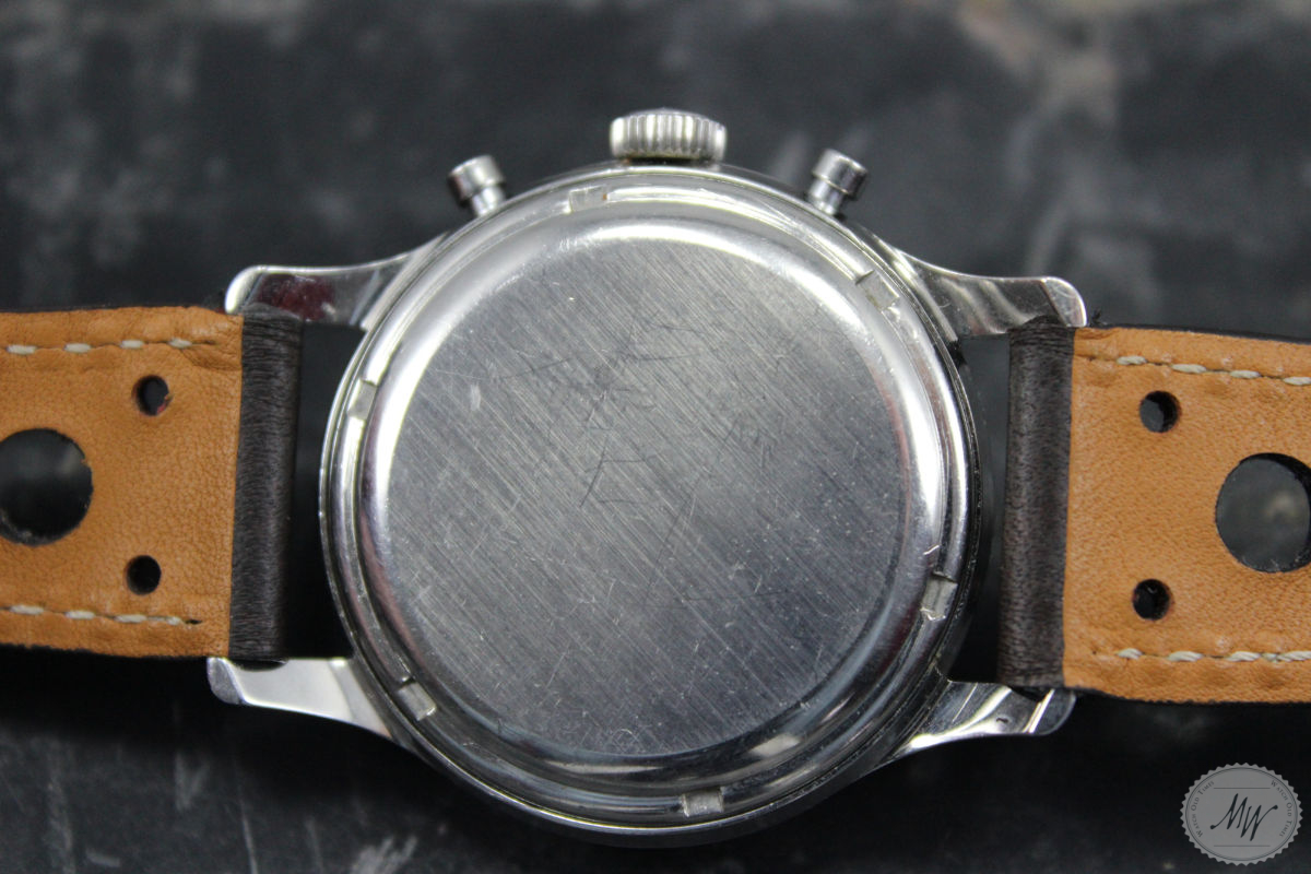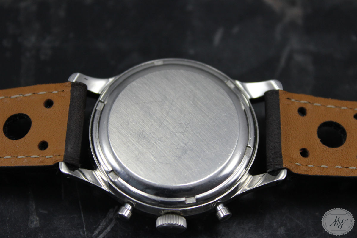 Heuer Pre Carrera Ref. 2444 im sehr schönen Originalzustand aus den 40er Jahren. Das Gehäuse befindet sich in sehr gutem Zustand mit minimalen Tragespuren. Das Zifferblatt und das Zeigerspiel sind für das Alter ebenso sehr gut erhalten und haben eine schöne Patina, zeigen aber die erwartbaren Altersspuren für eine Uhr dieses Alters. Die Servicehistorie ist nicht bekannt, aber das Werk (Val. 72) läuft in allen Funktionen absolut einwandfrei.