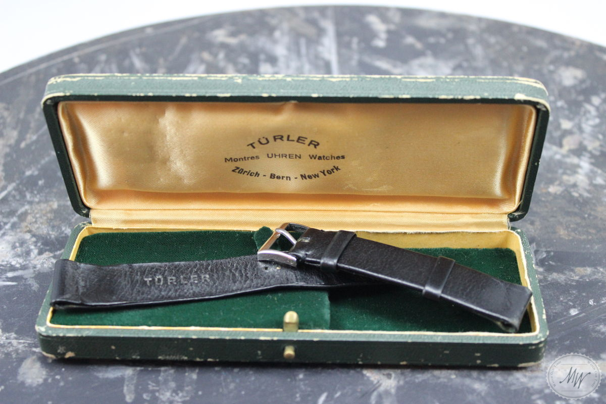 Einzigartige Sammleruhr! Sehr schöne Jaeger-LeCoultre Memovox Ref. E853 verkauft von „Türler“ in sehr schönem und komplett originalem Erhaltungszustand aus 1958. Das Zifferblatt und das Zeigerspiel sind perfekt erhalten und haben eine wunderschöne Patina. Das frühe Automatikwerk (Kal. 815) wurde gerade von meinem Uhrmacher überprüft und läuft in allen Funktionen absolut einwandfrei. Die Uhr kommt mit dem originalen Lederband und der originalen Box in gutem Zustand (siehe Bilder).